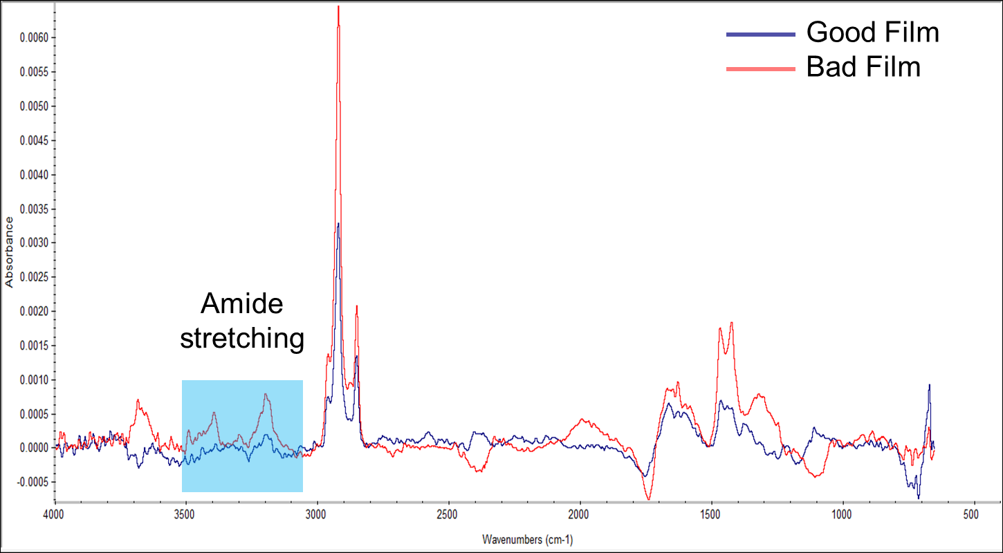 Figure 2 shows how various molecules changed on the surface after a part was stored in plastic wrapping. These changes occurred directly as a result of the transferring of elements from the plastic. Both carbon and fluorine impact adhesion, and the amount found on the surface increased significantly after exposure to plastic wrapping.